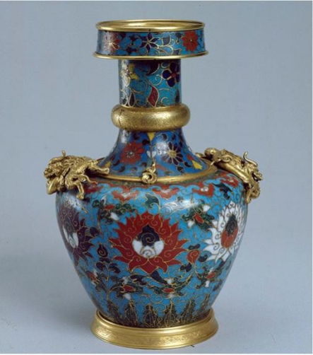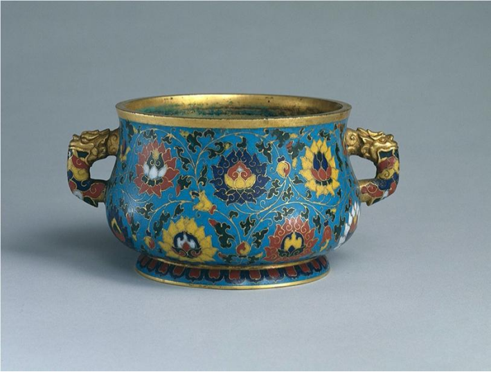 明宣德 掐丝珐琅缠枝莲纹龙耳炉