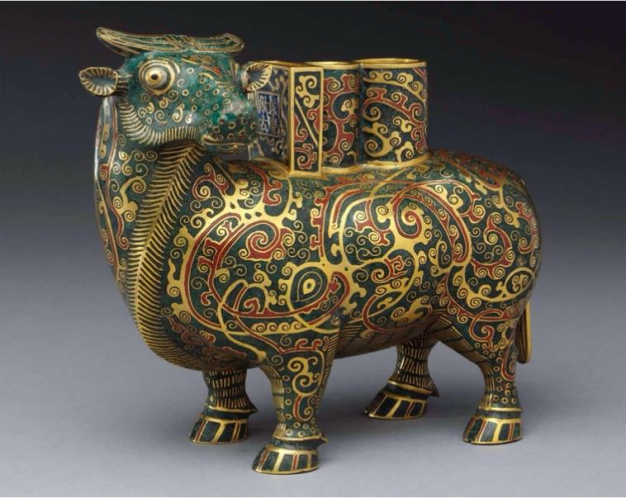 第一部分,首先介绍珐琅的定义。珐琅主要成分是石英(二氧化硅,俗称马牙石),加上长石、硼砂、铅丹等原料,熔融后加入各种呈色的金属氧化物,附着在金属上胎体上的一种玻璃质材料。其次介绍明代宫廷“御用监”,清代宫廷“造办处”等作坊制造珐琅器的情况。其三,介绍珐琅器的四种主要工艺技法,即掐丝珐琅、画珐琅、錾胎珐琅和广珐琅珐。其四,根据考古发现,指出珐琅制作技术应该起源于公元前十三至十一世纪的古希腊,并在公元六至九世纪的拜占庭帝国发展到极盛。在中国,掐丝珐琅和錾胎珐琅器制作技艺则是在公元13世纪末到14世纪初,从阿拉伯地区传入的。