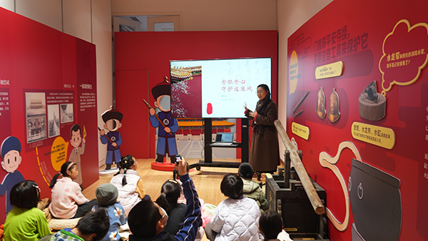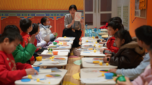 “赤胆丹心:守护这座城”课堂上,青少年在社教部老师的带领下,通过一块块拼图还原太和门的变迁,并在古建的保护史中领悟“守护”的意义。“青花共绘:我们的‘蓝’图”工作坊中,孩子们一边聆听外销瓷走向世界的故事,一边亲手绘制“青花瓷”纸盘作品,感受中外文明的交流对话。“宝玺风云:木宝的时空旅行”绘本课,还为低龄儿童带来了充满童趣的教育体验。他们与老师共读生动的绘本故事,还亲手设计了一方可爱的马年印章。