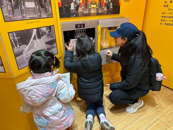 本次“故宫知识课堂”大胆打破常规,依托“来!听色彩讲故事”故宫教育体验展而设计开发。展览突破了传统的观展模式,是一个鼓励探索的互动空间。孩子们可以亲手触摸古建砖石与屋顶脊兽模型,透过望远镜观测古代星图,通过操作日晷理解古老的计时方法,甚至登上故宫特有的迷你“消防车”,体验角色扮演的乐趣。